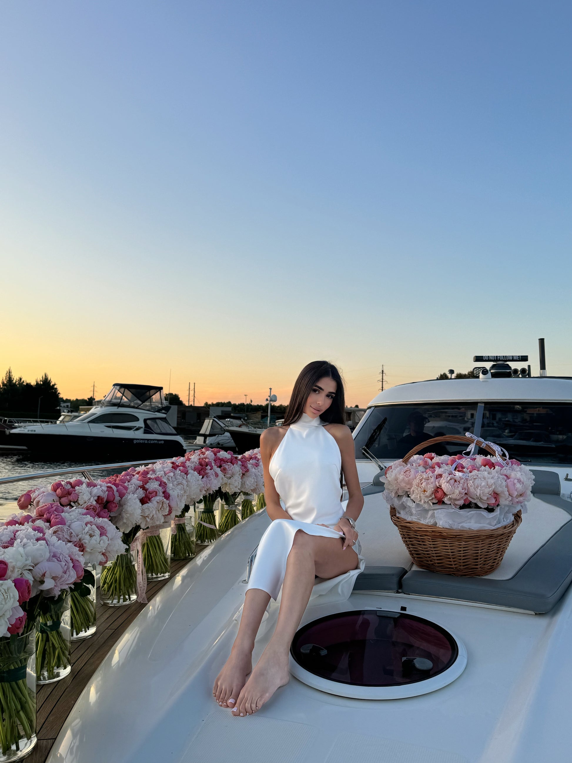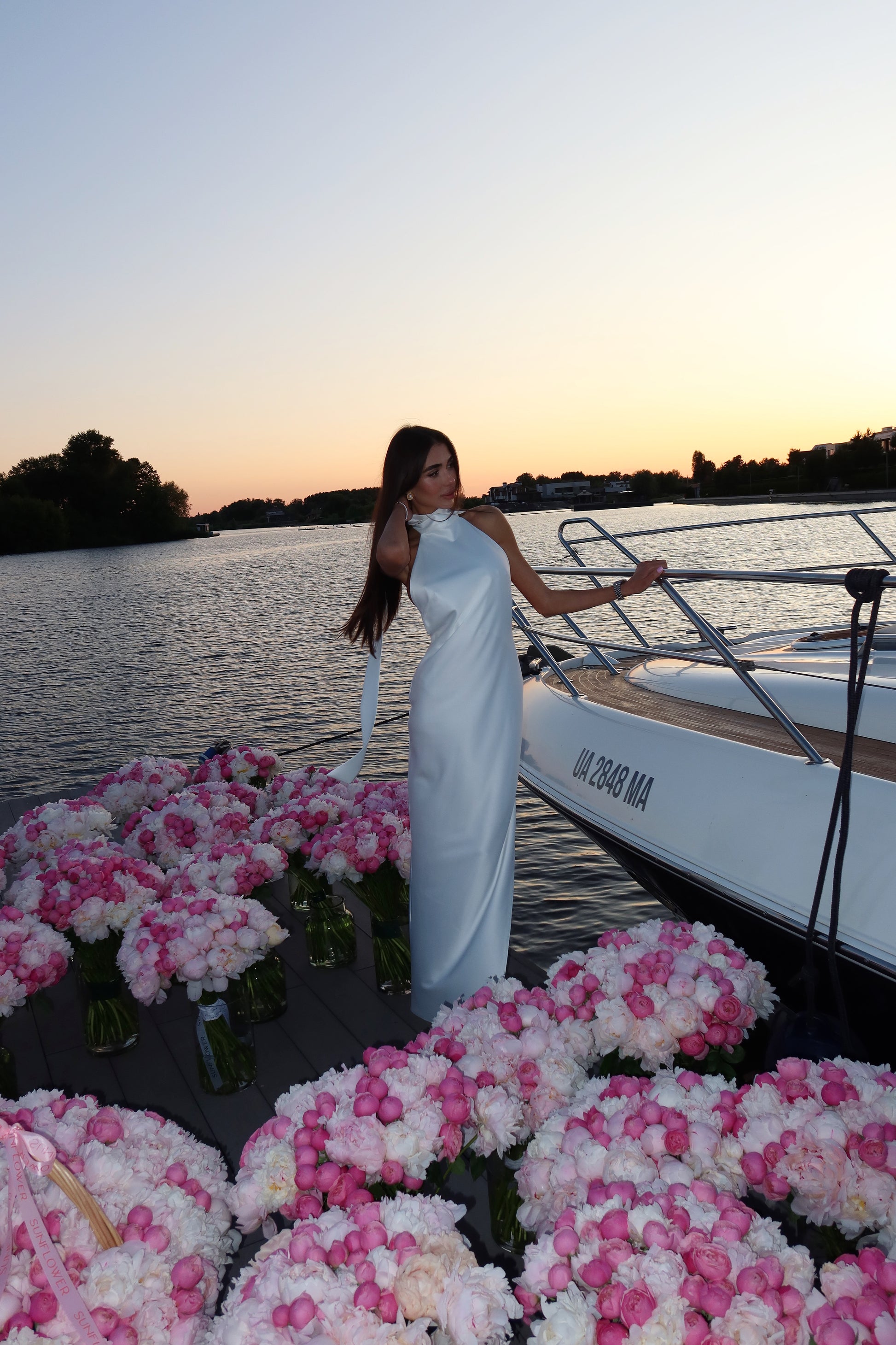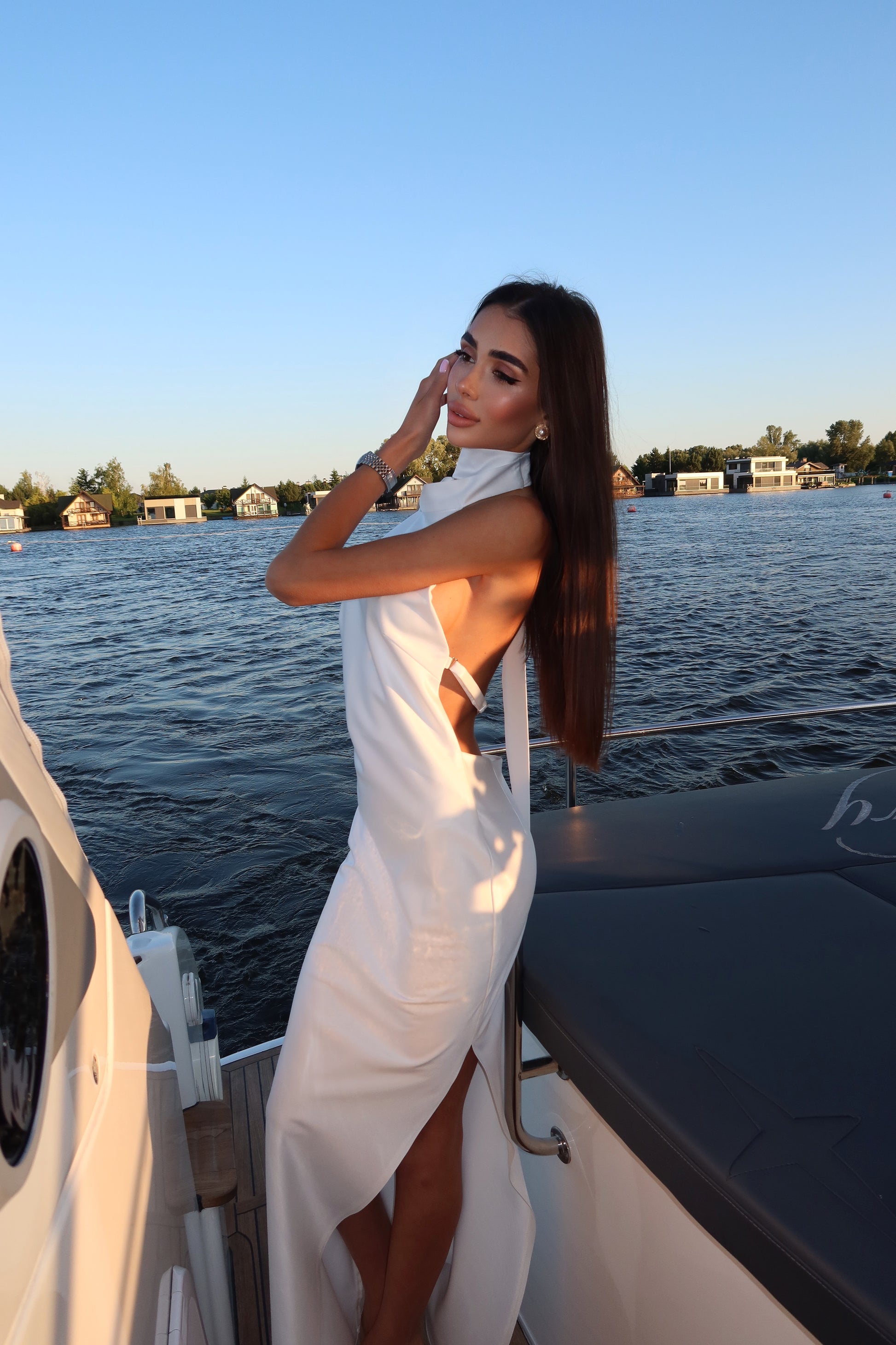 Celeste Dress -for those who appreciate refined femininity.Crafted from luxurious satin,with an open back and elegant neckline, this dress is perfect choice for an evening outing or a special event by the water. Available in both long and short lenghts